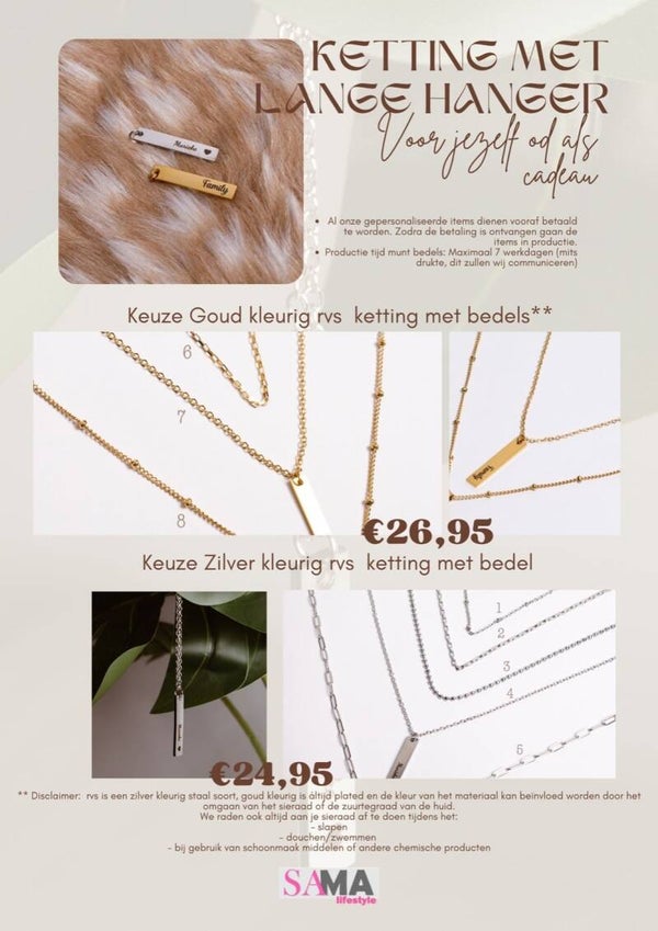 Gepersonaliseerde RVS ketting balkje 32x6x1,5mm | goud of zilver kleurig